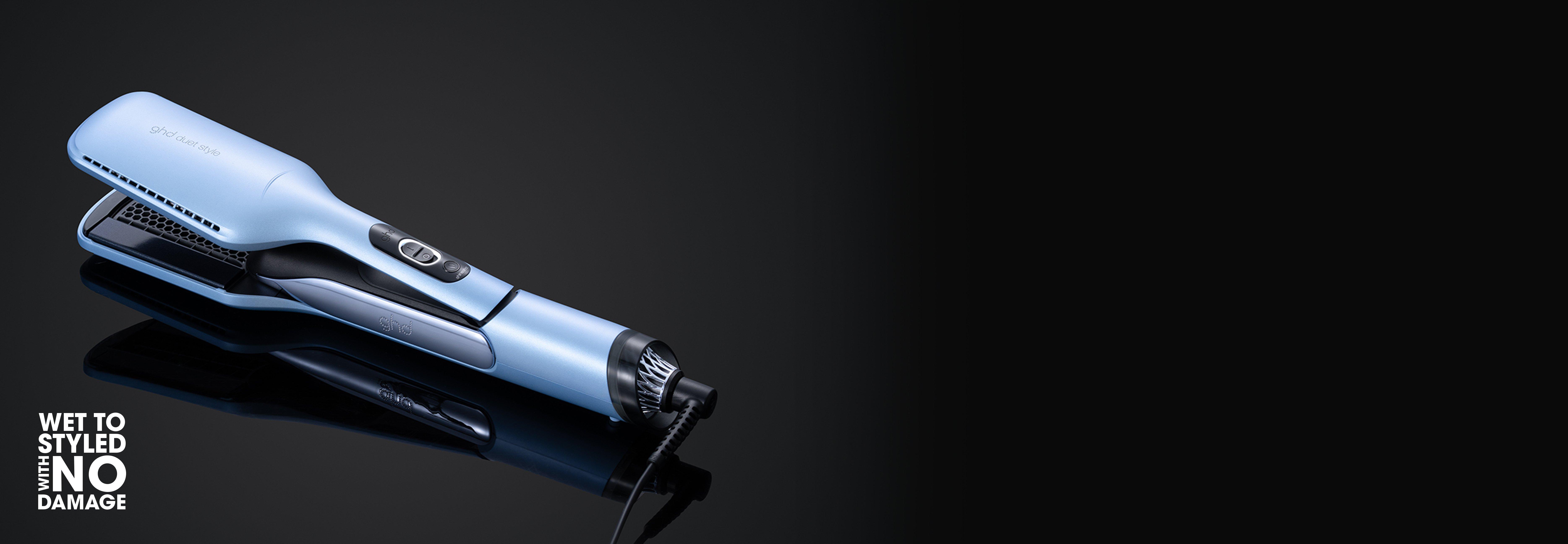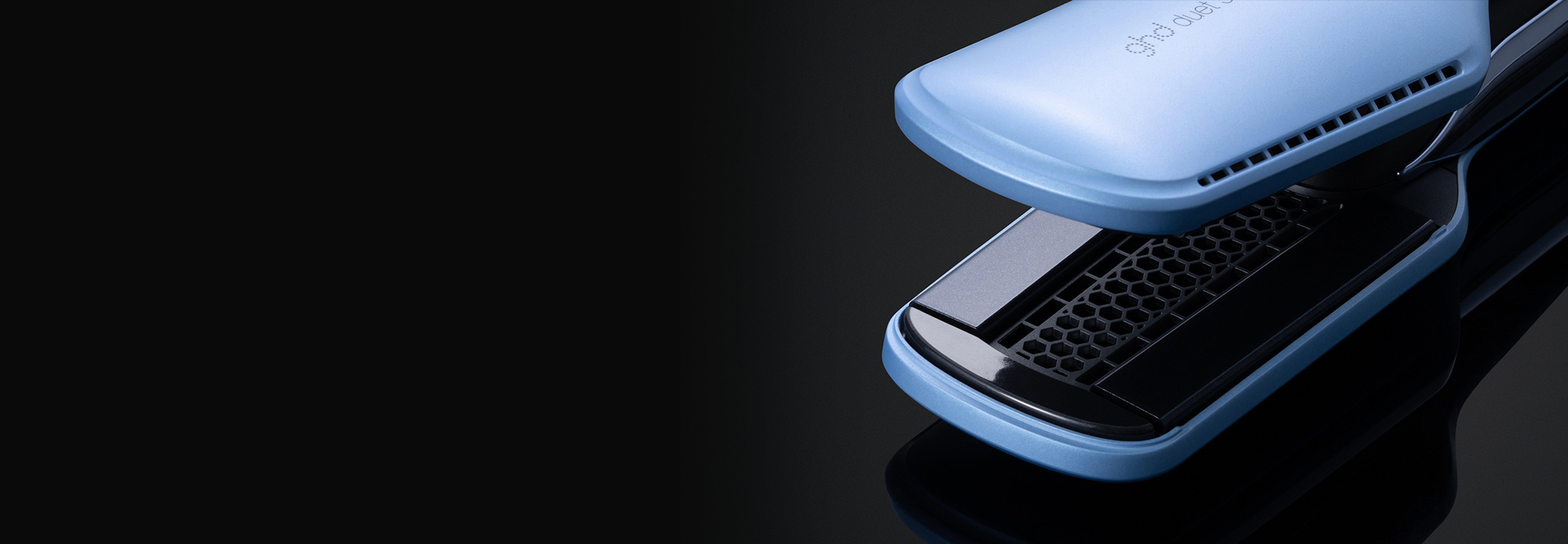 ghd duet 雙效熱風造型夾是我們首創的二合一乾濕兩用造型夾,配備革命性Air-fusion™技術,專為濕髮造型而設計。超凡的空氣動力學工藝結合4面智能低溫造型板,精心打造的空氣過濾網讓最大的空氣流量進入造型夾內,確保最強送風表現。配合智能低溫發熱板,一個工具即能同時吹乾及拉直頭髮,快速打造順滑亮澤秀髮2,展現意想不到的柔順。